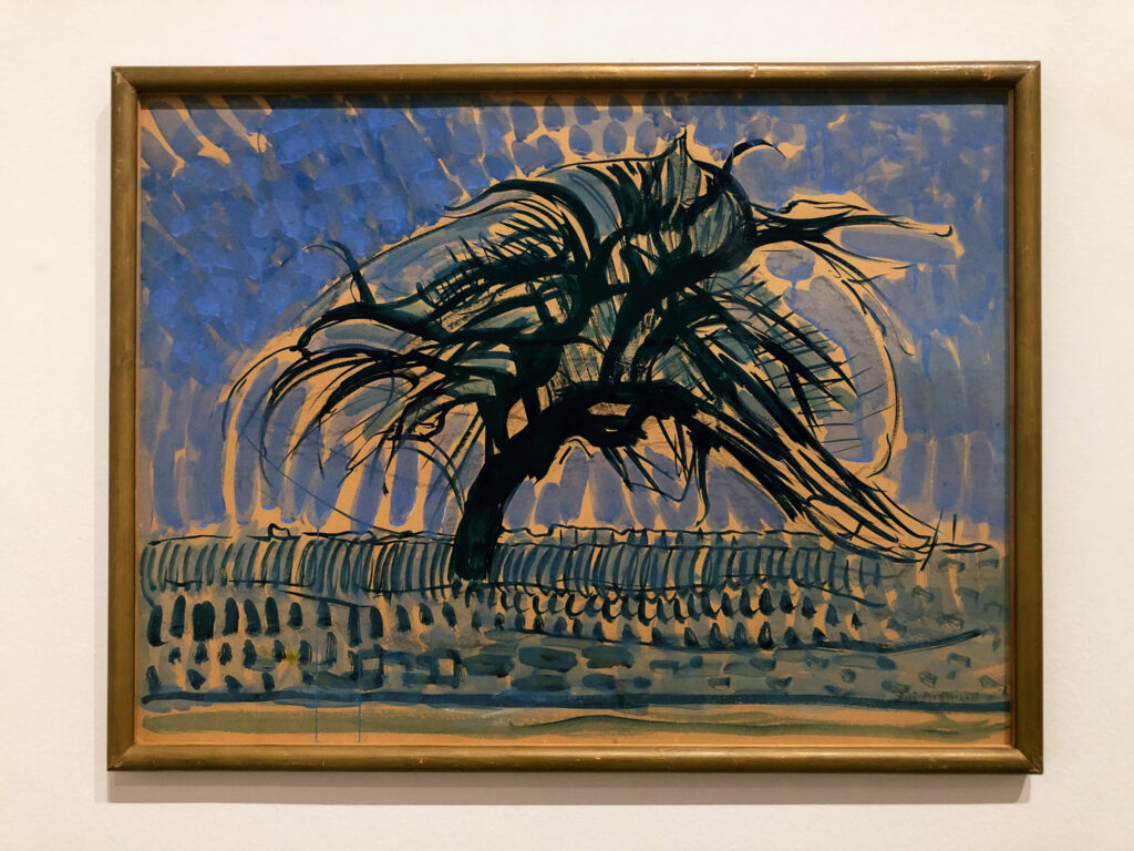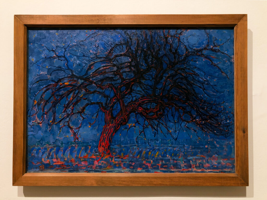 1908年到1911年間,Mondrian畫了一系列樹木。1911年,他前往巴黎接觸立體主義後,開始重新創作樹木主題作品。〈紅樹〉中,你看到的不是一棵真實存在的樹。相反地,它呈現一種以形狀和色彩為主的抽象感。Mondrian用充滿生氣的筆觸勾勒樹枝,似乎在慶祝創作本身。