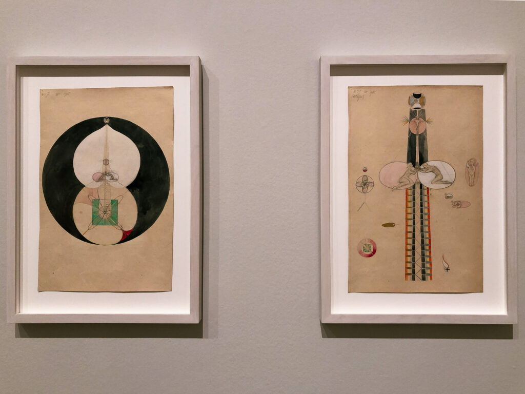 展覽最後的壓軸——十幅超巨大作品《神廟繪畫》(The Paintings for The Temple),af Klint相信這是由她的精神導師委託創作的。它們依時序,代表了從童年到老年的人生階段。af Klint使用有機圖案和抽象幾何圖形,為此系列注入活力。如代表蝸牛的螺旋,有生長和進化之意。