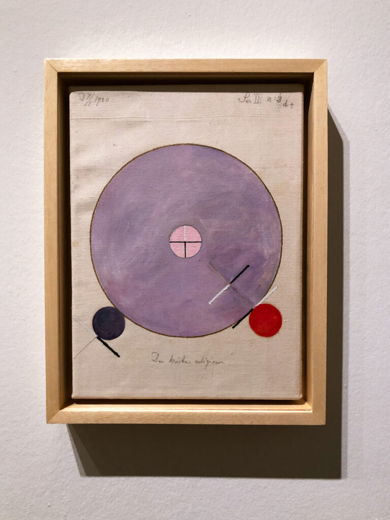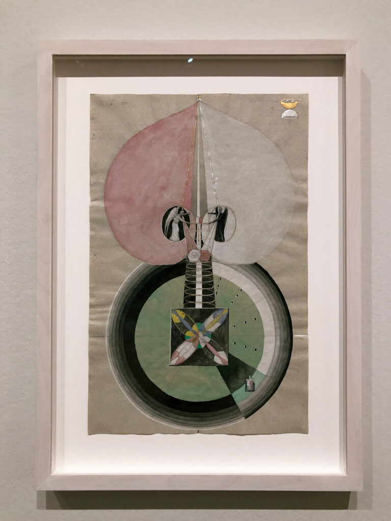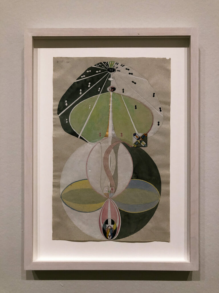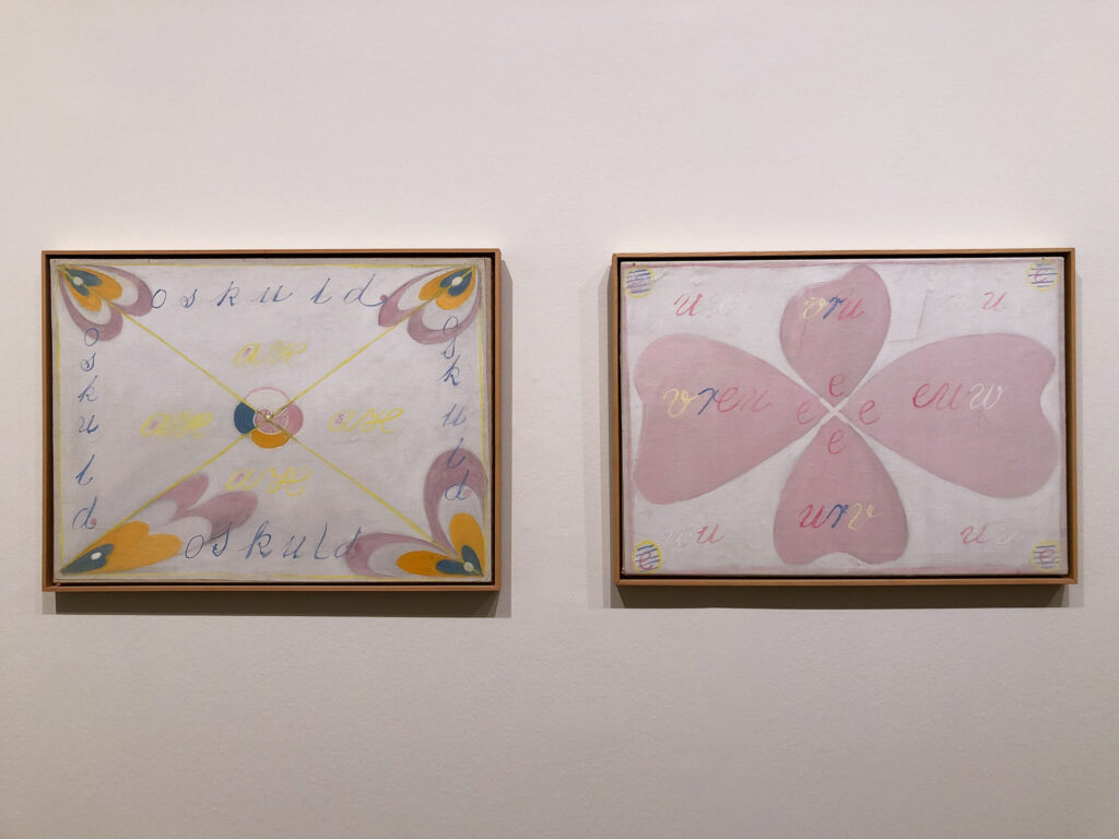 本次展出的兩位藝術家,我想大家比較熟知的,是以繪製線條與色塊聞名的Piet Mondrian(蒙德里安)。我喜歡Mondrian的作品,但這次讓我更好奇的,是瑞典藝術家Hilma af Klint。記得首次看到有人分享af Klint的作品,我就被她神秘難解、又帶有一絲柔軟甜美的畫風吸引。